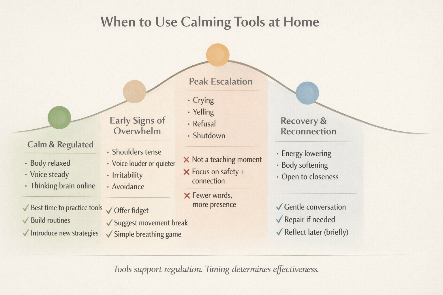 Calming tools for kids at home work best before escalation or during early signs of overwhelm, not at the peak of distress.